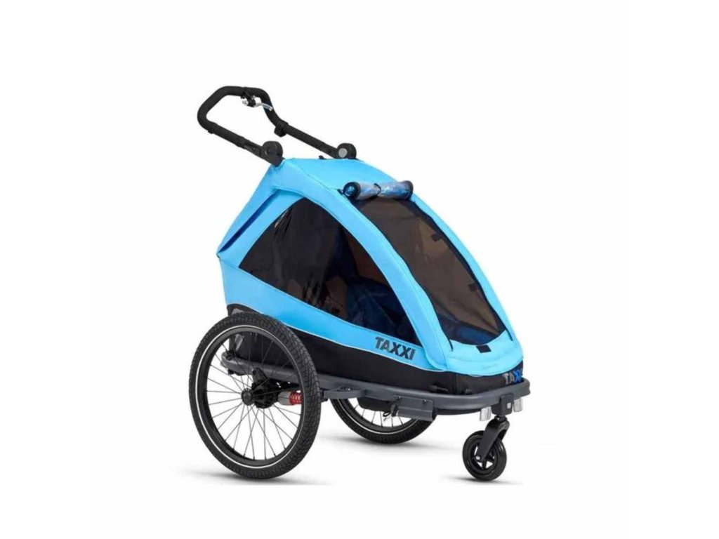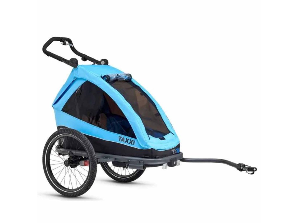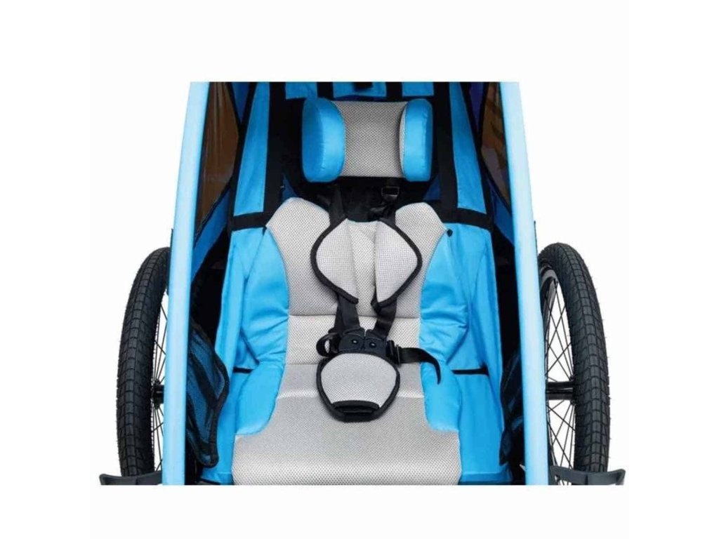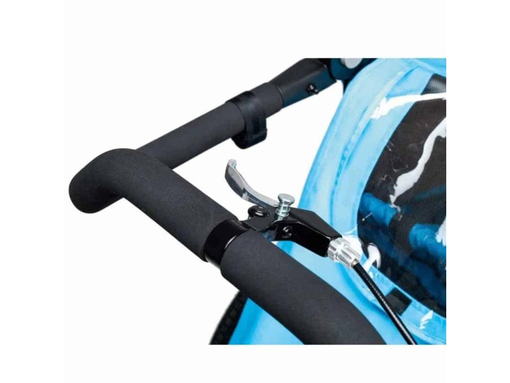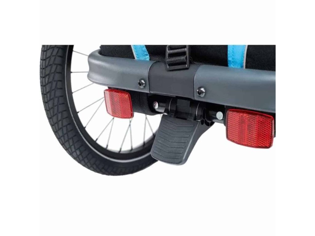 Pre deti od 9 mesiacov do 6 rokov. Bezpečnosť dieťaťa zabezpečujú nastaviteľné pásy s 5 bodovým magnetickým upínaním, odrazky, blikačka a samozrejme vlajka pre lepšiu viditeľnosť. Odpruženie vozíka dokáže eliminovať nerovnosti na cestách a mimo ciest zabezpečí deťom komfortné cestovanie.
